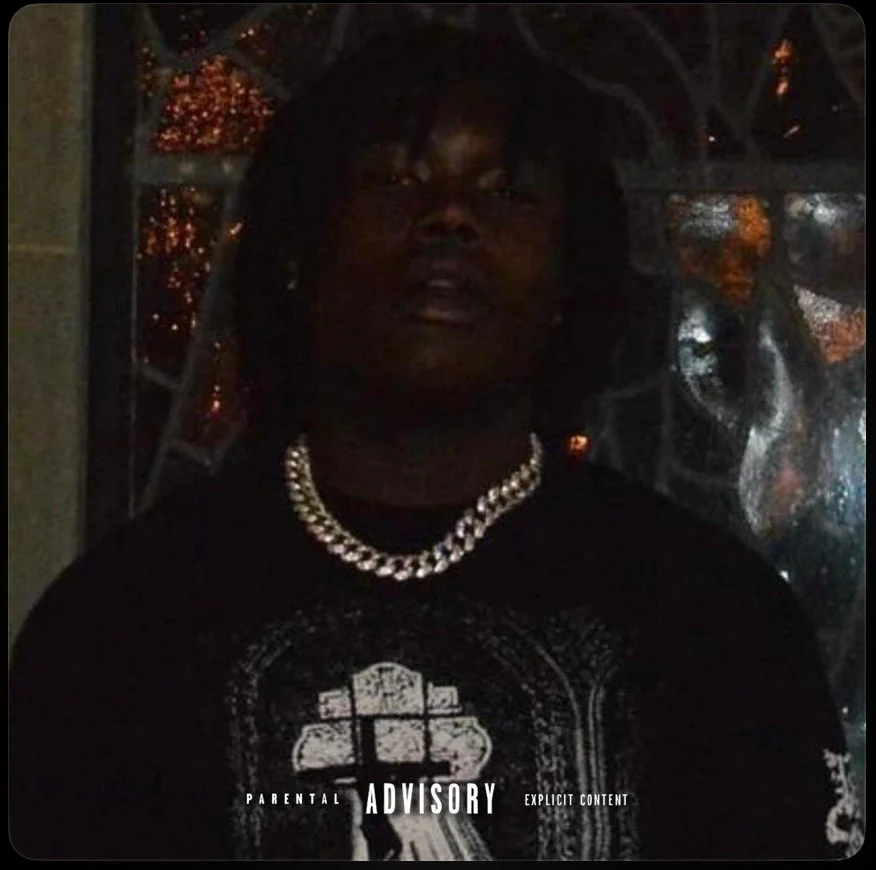 A person named CDS with dark skin and dreadlocks wearing a thick silver chain necklace, dark clothing with a graphic design, standing in front of a stained-glass window at night. CDS Single - Know It